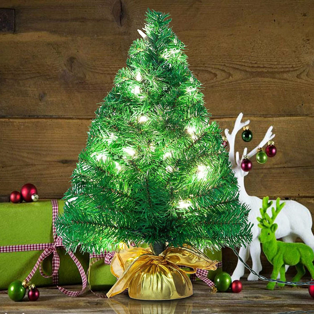 - Our TableTop Christmas Tree with 50 Warm White Lights in Gold Cloth Bag is plug-in powered, plug it in and it will light up for the whole christmas. Plugs are stack-able, if you buy more than one, it will save outlet