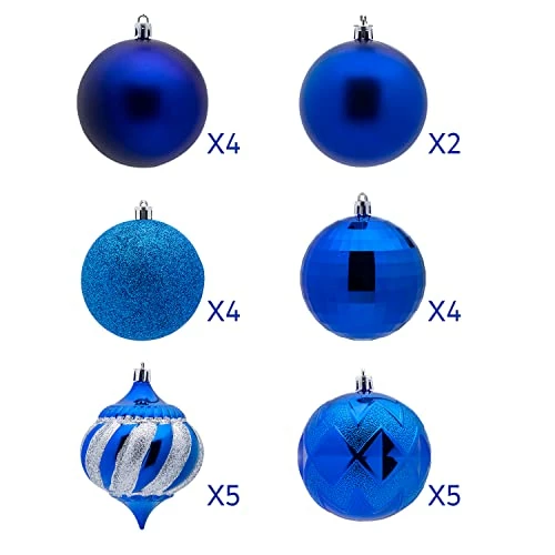 - Our Christmas Tree Ball Ornaments Set includes 6 Matte Balls, 5 Quilted Balls, 5 Swirls Pointy Balls, 4 Disco Balls, 4 Glitter Balls.