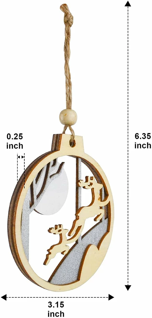 - Our fancy wooden Christmas decorations are made with three layers and were lasered cut to ensure smoothness on each piece. A durable piece of twine is attached to the wooden piece so it could hang easily. This Christmas wooden hanging reindeer ornaments can be hung in your Christmas tree or other places. Can be used as a decoration around your house and other various crafts projects you might want to make.