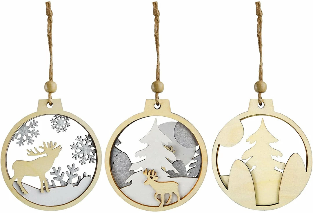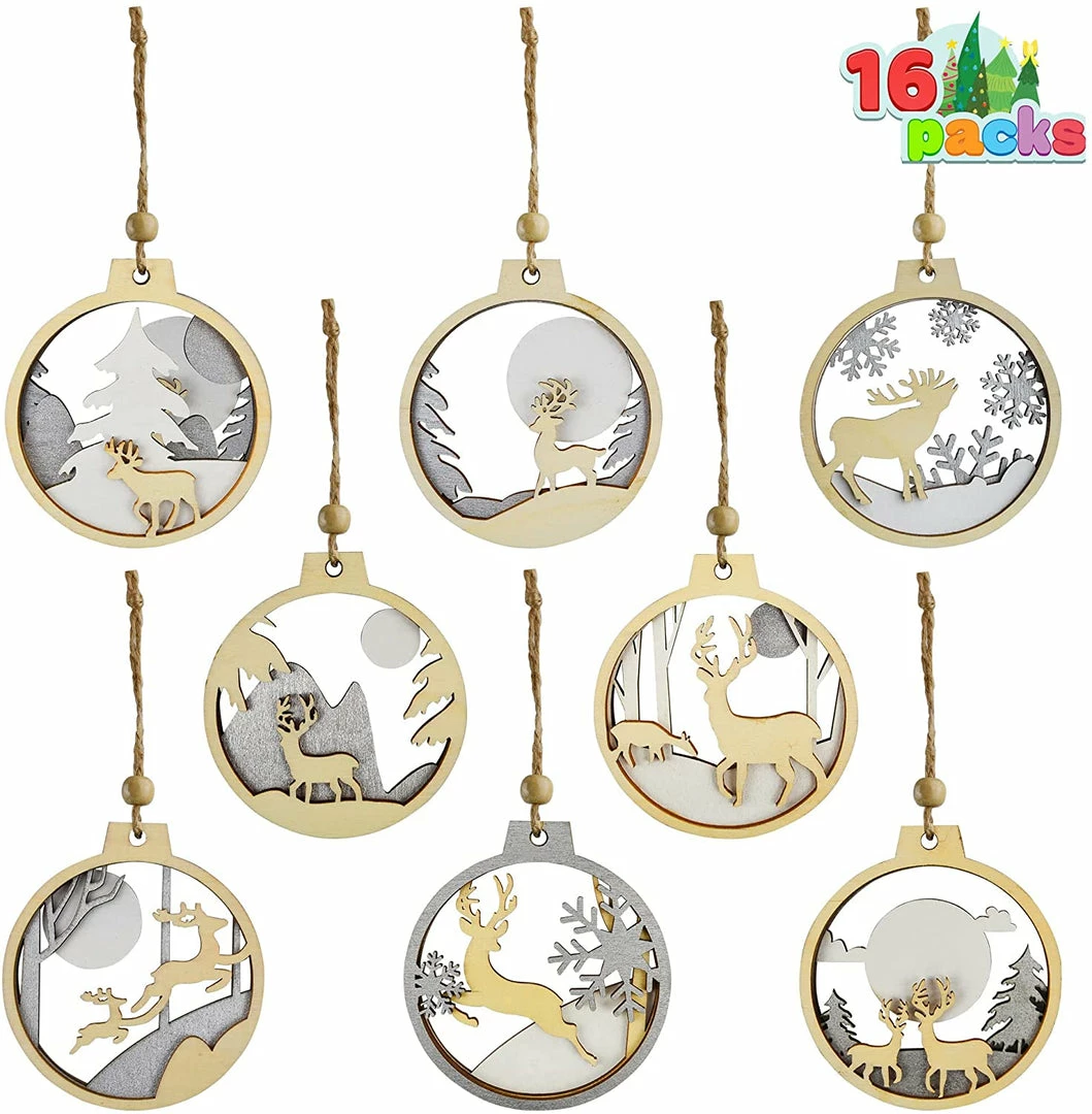 - Our Christmas ornament set includes 24 packs of Christmas wooden hanging reindeer ornaments with 8 different designs. The hanging wooden ornaments are made of natural wood to make it look classy. Perfect for Christmas tree indoor/outdoor decorations.
