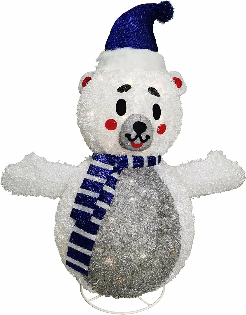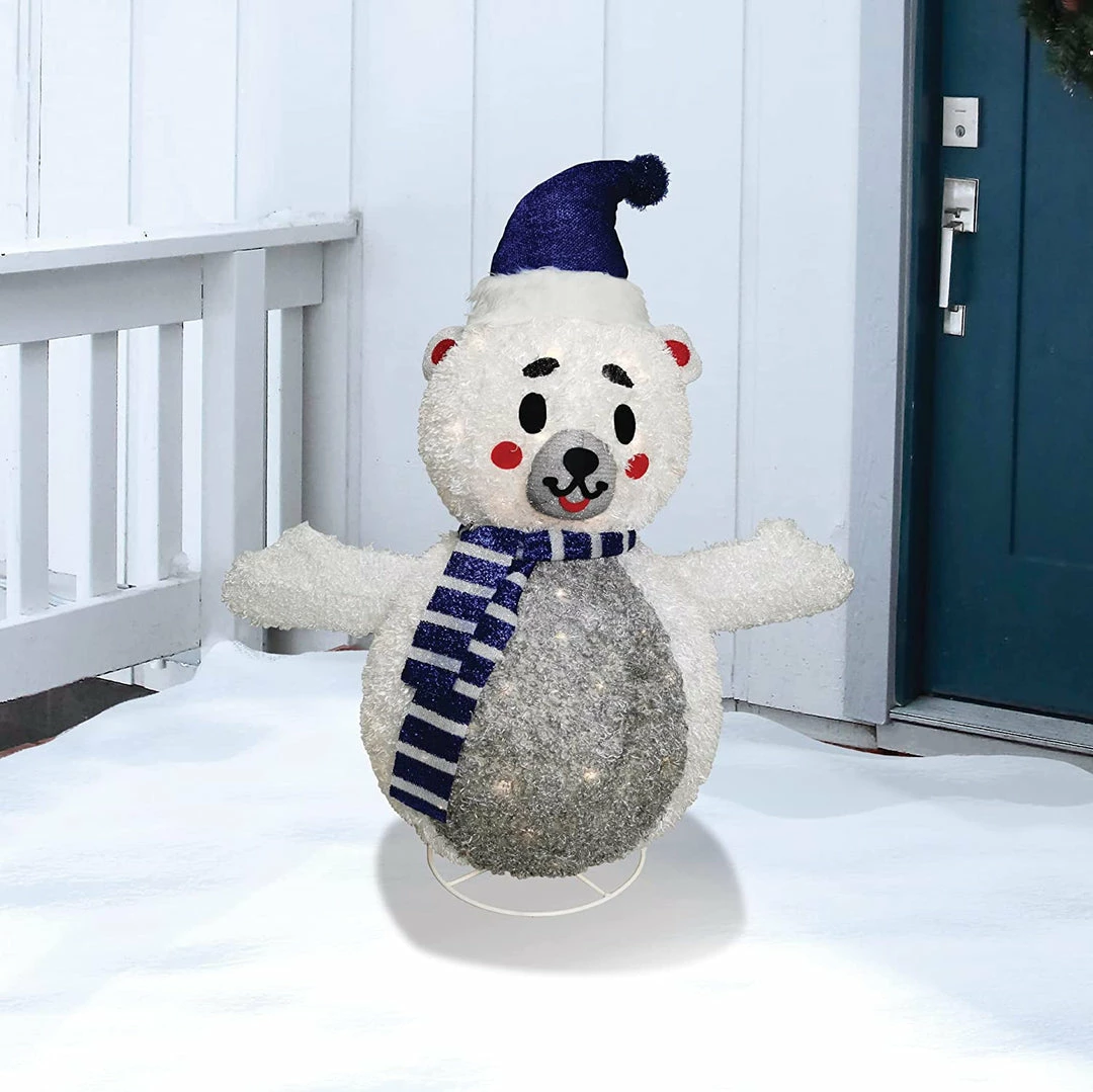 - Our bear yard light includes a 3 feet tall collapsible bear with 100 led warm white lights in clear wire, metal stakes, and zip ties. Made of tinsel material.