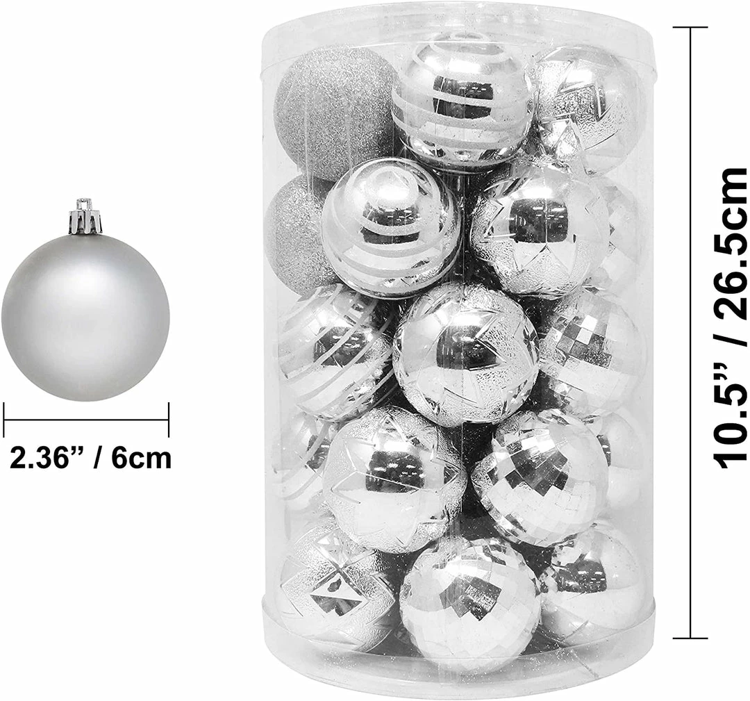 - REAL FUNCTION. These Christmas Party Decorations feature a 34 count shatterproof Christmas balls set measuring 2.36 inches. It is made with shatterproof material for safety, durability, and longevity!
