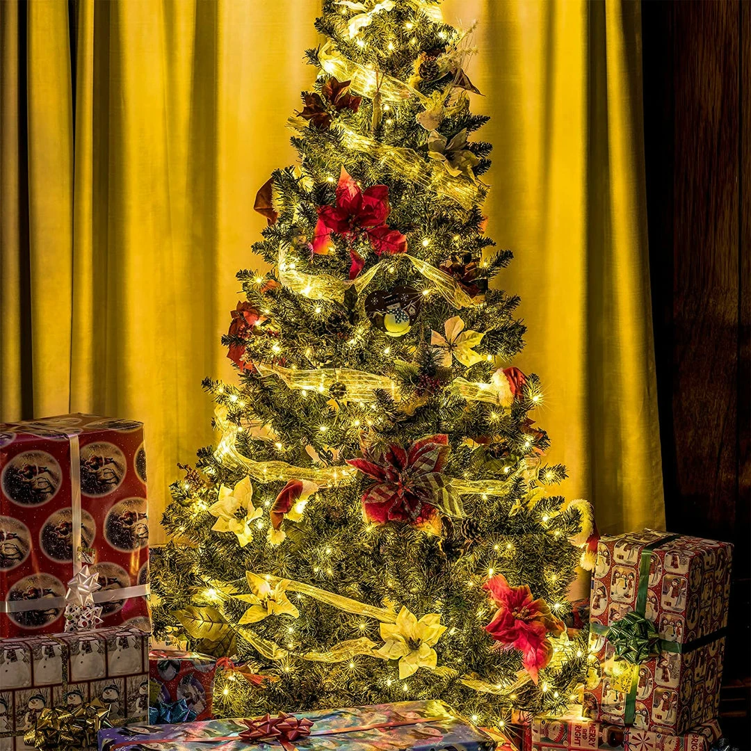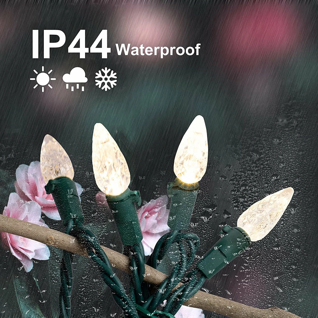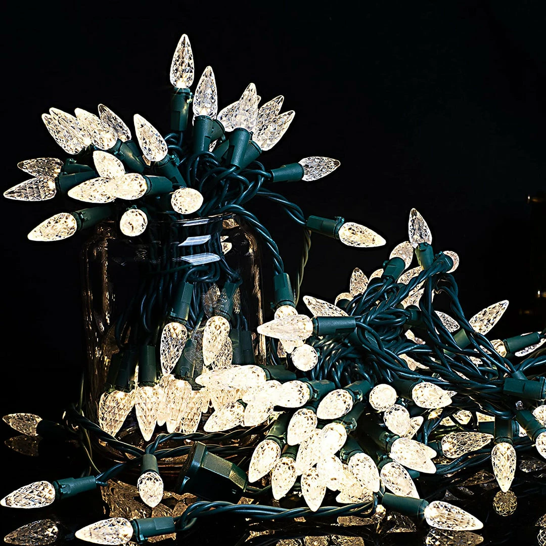 - Our Christmas lights set includes 1 pack of 150 count warm led light strings. It measures around 50.52 ft with green wire. Whole lighted length coverage of 48.72 ft. Also equipped with a c6 bulb type for more efficient, bright, and energy-saving lighting. Our package provides 1 extra c6 bulb count for replacement.