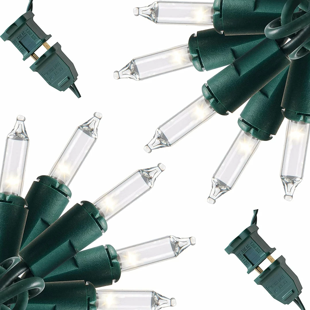 - OurΒ 52.5 FT 200 Count Christmas Clear Green Wire String Lights. Conventional household power supply 120 volts 9.6 watts. 22 sets can be connected end to end with 4 extra bulbs 2 fuses included