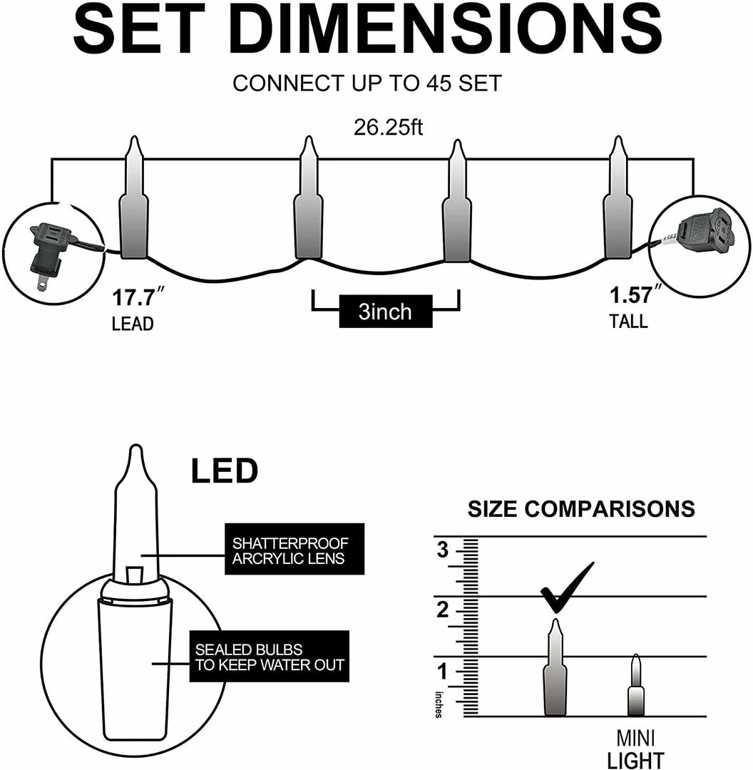 - Connect up to 45 sets: with the end sockets, these Christmas string lights could be extended up to 45 sets. These are made of high-quality material, with durable insulated wire, our product could be used for a long time. Waterproof. Our led string lights are waterproof and can protect from splashing water even in rain. A perfect match to use for both outdoor and indoor home party decoration.