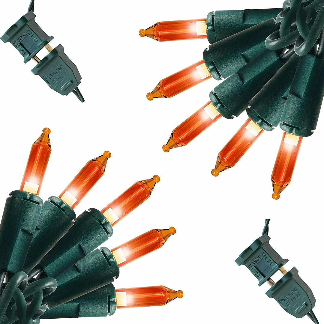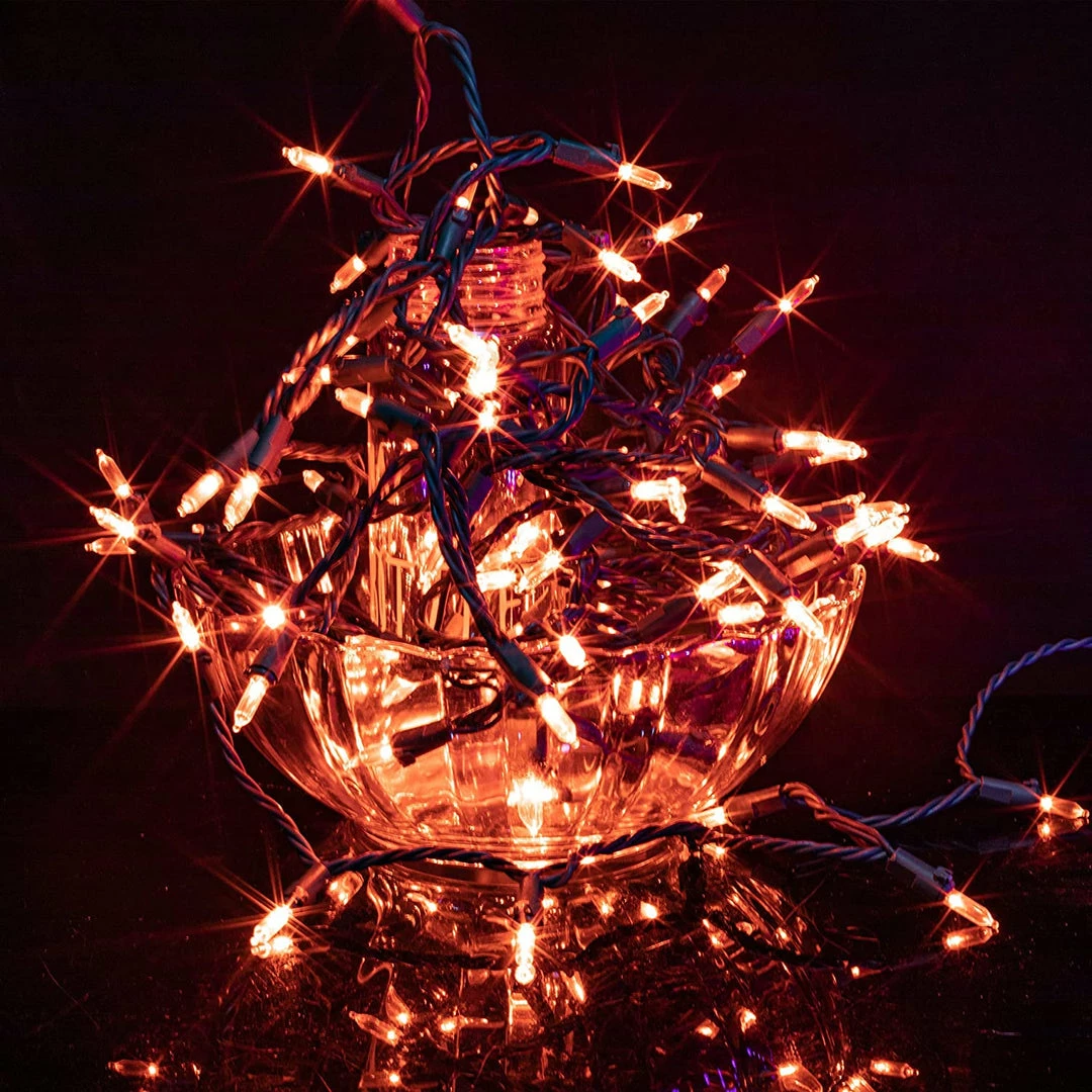 - Our Christmas lights set includes 2 sets of 100 counts of always-on holiday orange-led string lights. Each set lighted 26.25 feet in length and 100 count super bright orange LEDs.