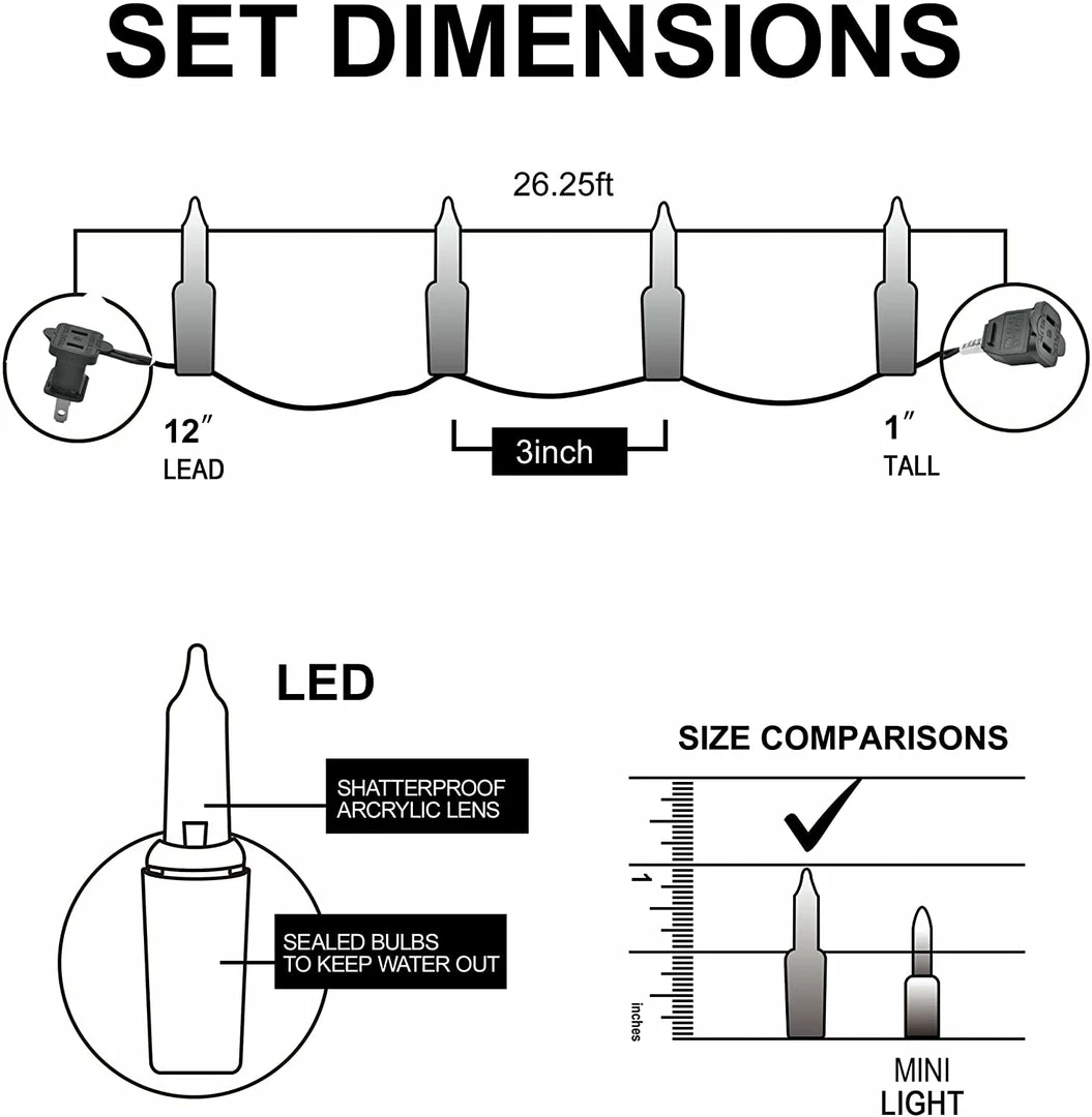 - Connect up to 22 sets: with the end sockets, these Christmas string lights could be extended up to 22 sets. These are made of high-quality material, with durable insulated wire, our product could be used for a long time. Waterproof. Our led string lights are waterproof and can protect from splashing water even in rain. A perfect match to use for both outdoor and indoor home party decoration.