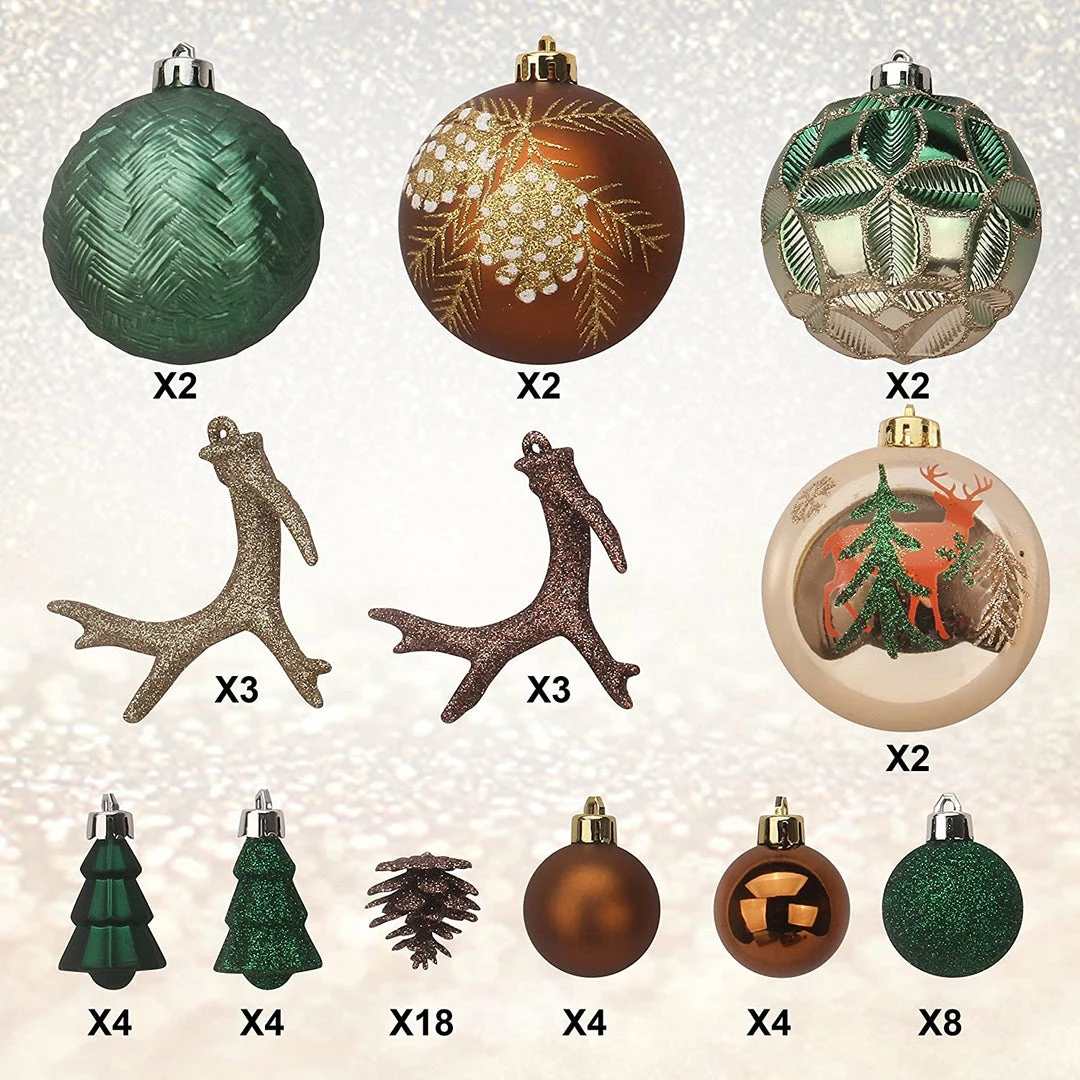 - Our Christmas decoration set includes 56 Christmas ball ornaments. Each color is bright and beautiful and perfect for Christmas decorations!