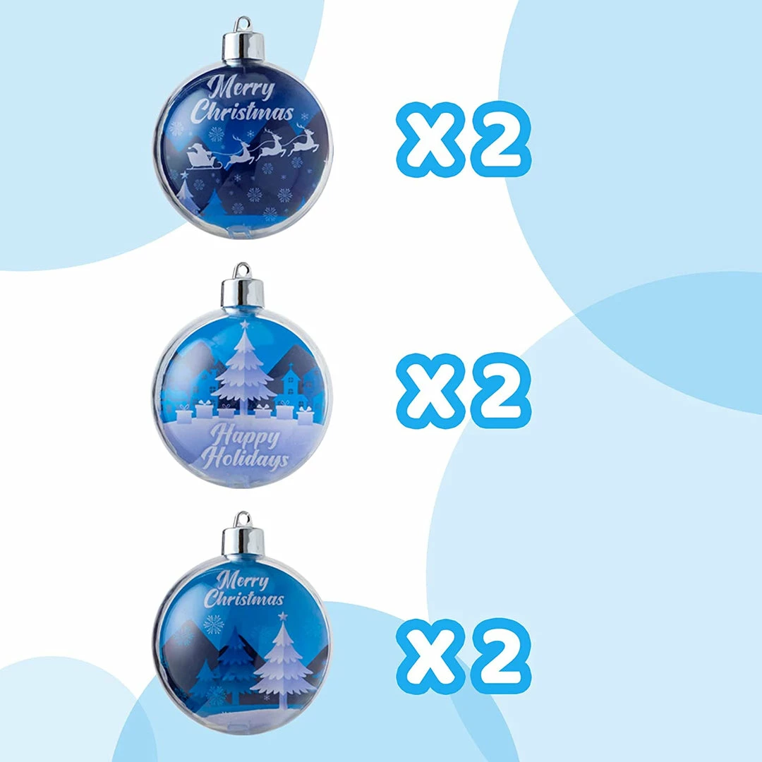 - Our fantastic DIY Christmas decorations include 6 pcs 7cm two-sided clear plastic Christmas ball ornaments perfect for indoor and outdoor decorations.