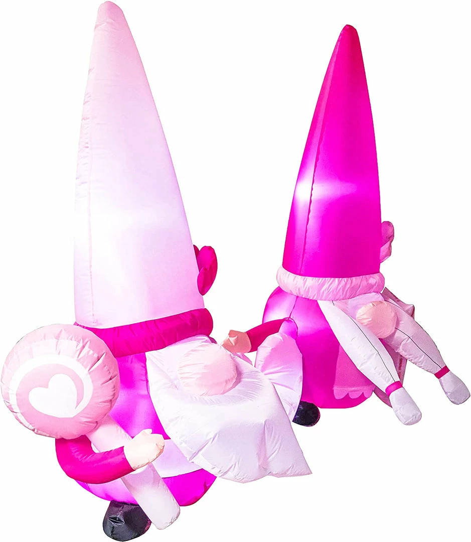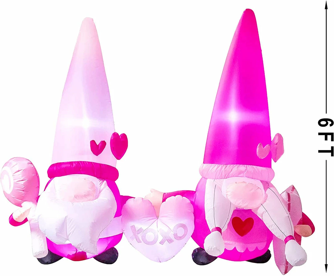 - Our 6 feet gnomes couple inflatable valentine comes with an extended cord, ground stakes, fastened ropes, built-in sandbags, built-in led lights, and a plug with ul certification.