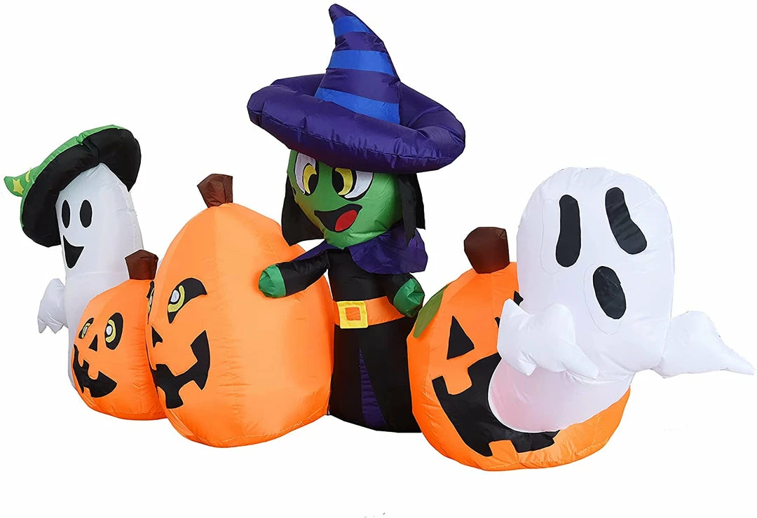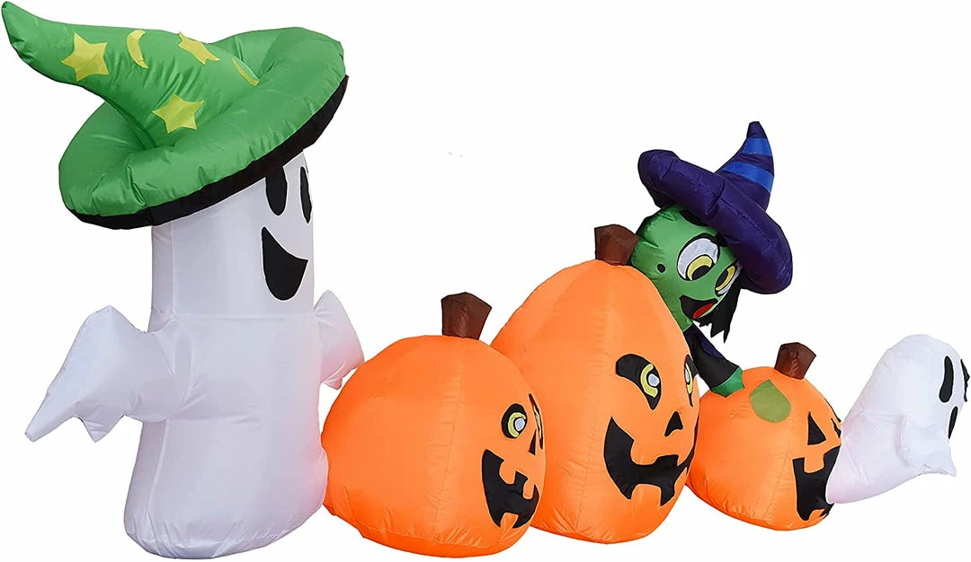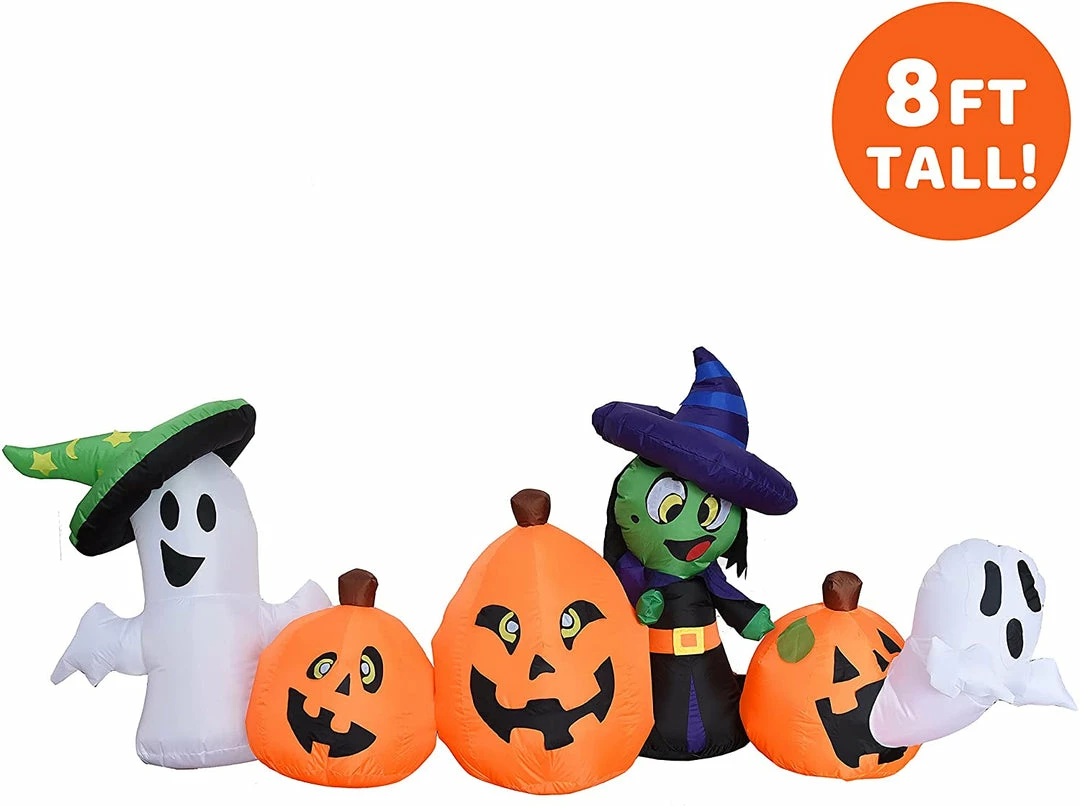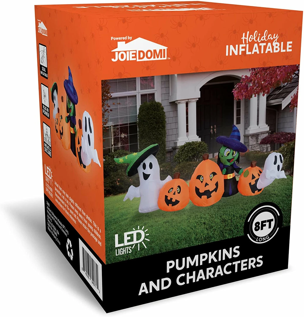 - 8 feet long horizontal inflatable pumpkin and characters inflatable come with extended cords, ground stakes, fastened ropes, built-in sandbags, and a plug with UL certification.