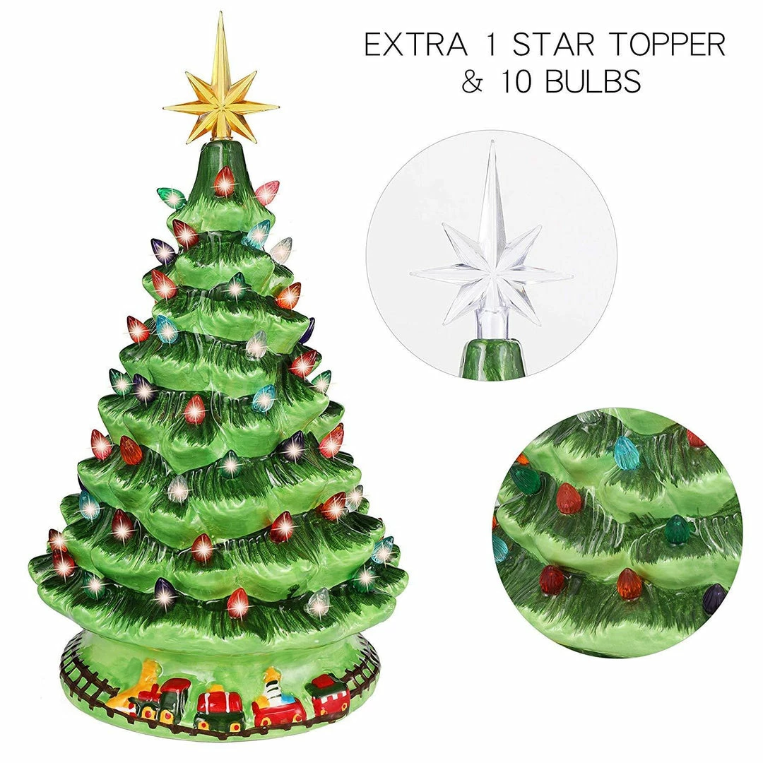 - OurΒ Joiedomi 15β Tabletop Ceramic Christmas Tree with TrainΒ (include star topper)Β is made of glossy ceramic, come with multicolored bulbs and transparent star tree topper.