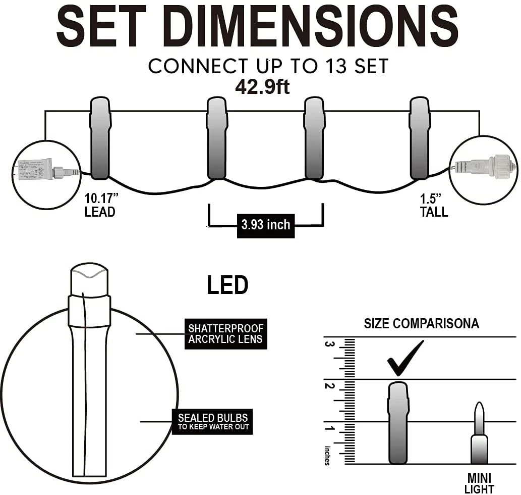 - CONNECT UP TO 13 SETS: With the end sockets, these Halloween string lights could be extended up to 13 sets.