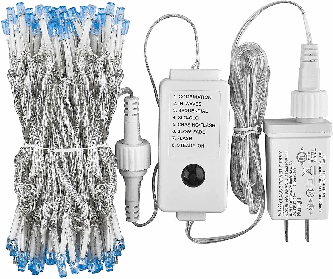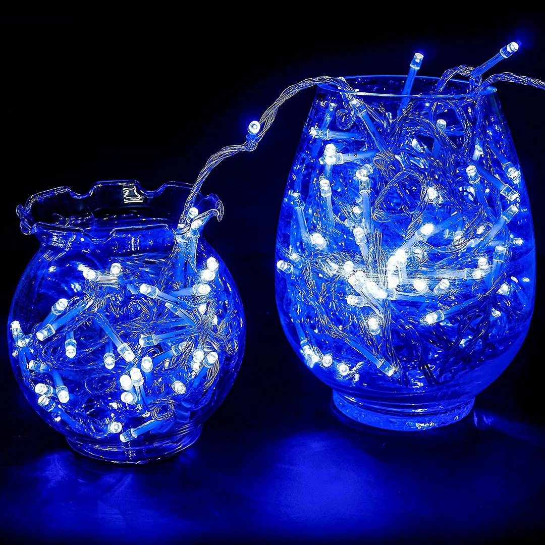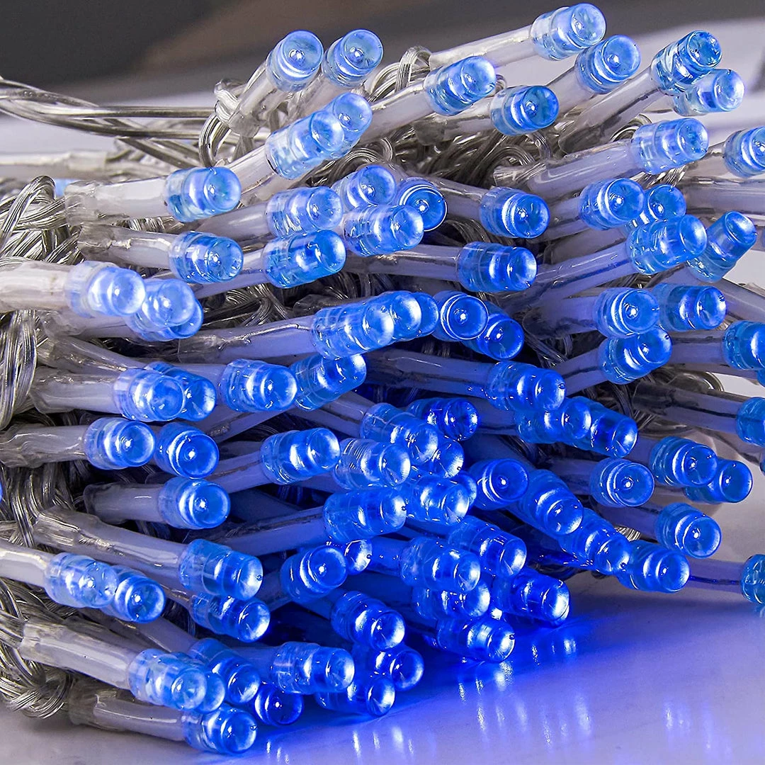 - Our Halloween Lights include 200 Blue LED Clear Wire String Lights with 8 Modes. Each set’s total length is 75.7 feet and 200 counts Blue LED has 3.93 inches spacing. The bulb’s diameter is 5mm and height is 8mm.
