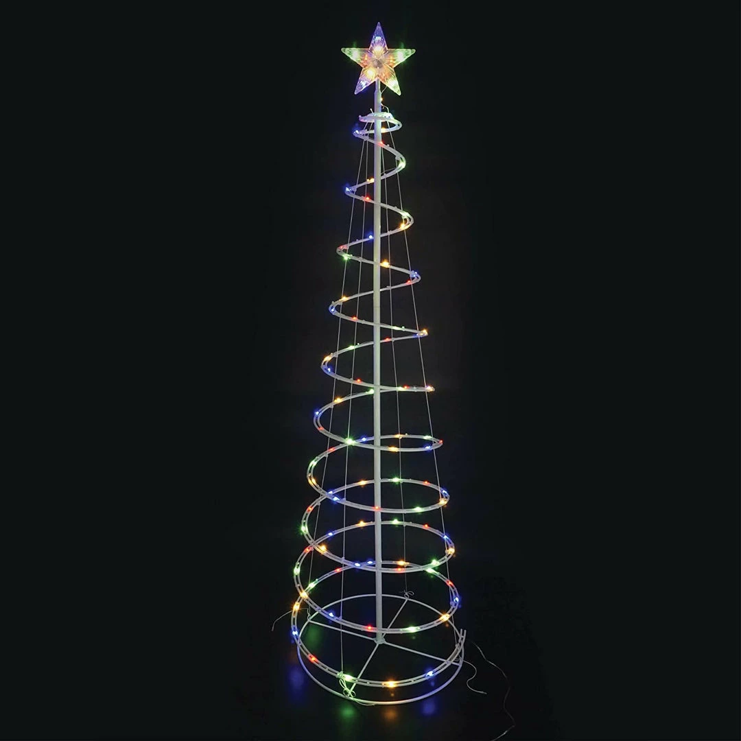 - Our Christmas LED Yard Lights includes a 5 Feet Tall Spiral Christmas Tree with 100 LED Multicolor Lights in Clear Wire, and 4 Metal Stakes.