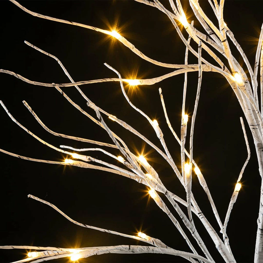 - Our Decorative Holiday Tree includes 6 Feet White Birch Tree Decoration with 96 LED Lights.