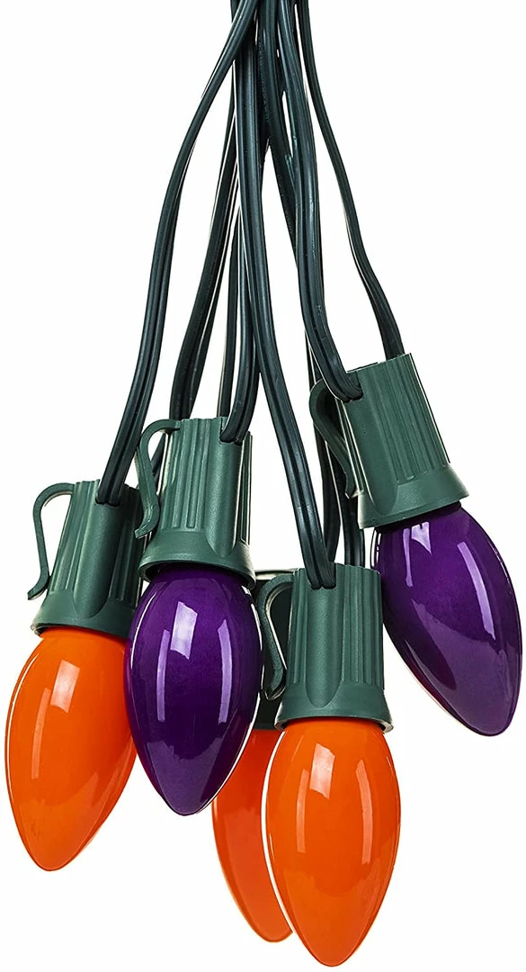 - Our classic Halloween dรฉcor with C9 purple & orange incandescent lights brings your Halloween a spooky atmosphere.