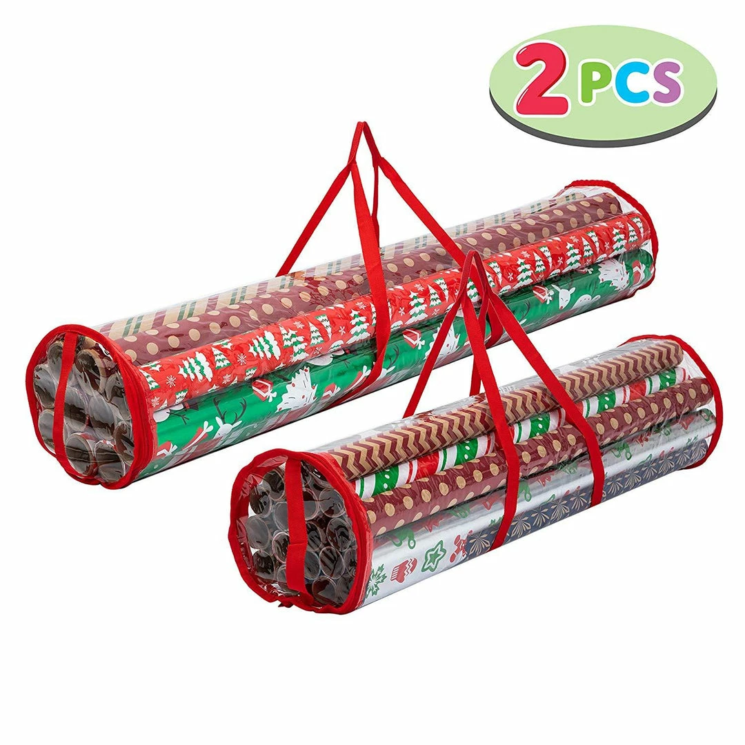 - Wrapping paper storage containers set: 2 joiedomi clear gift wrap storage organizer with different length(30.5β and 39.5β) helps you store and sort multiple rolls of wrapping paper. Each wrapping paper bag fits up to 20 rolls (1.5β thick)