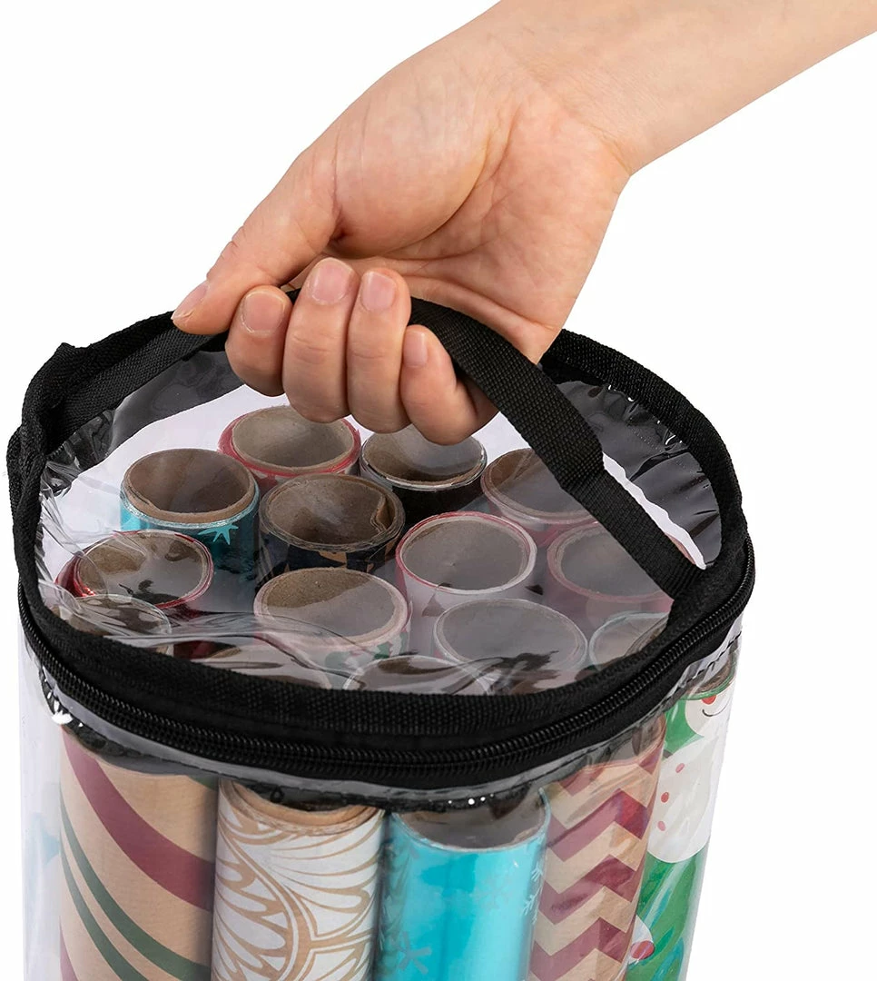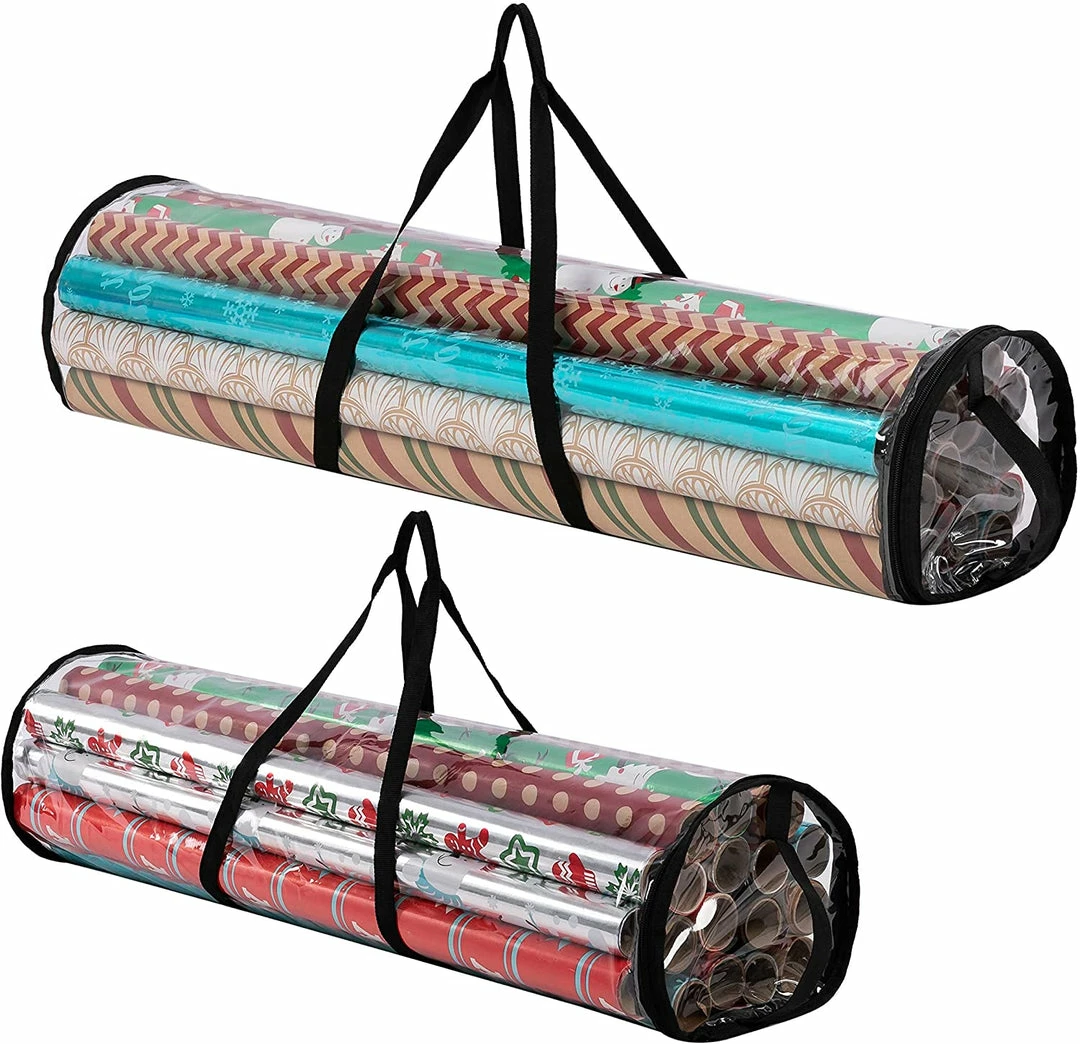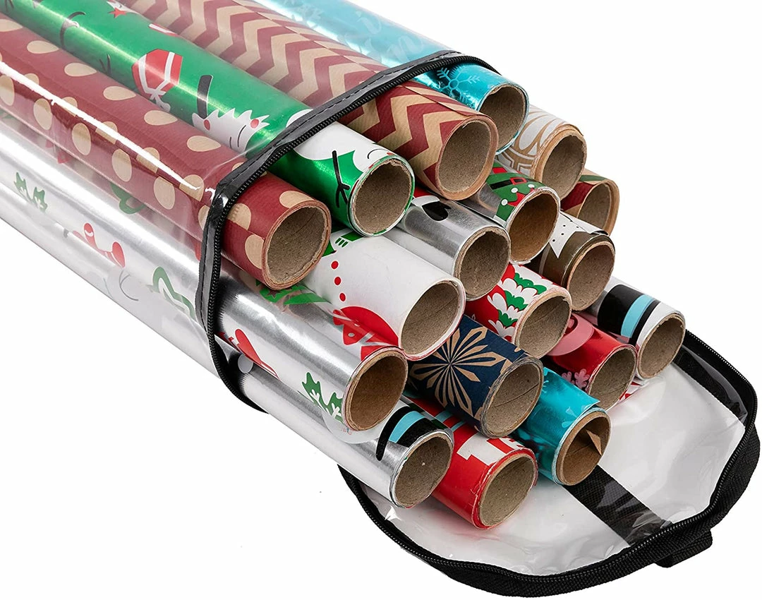 - Wrapping paper storage containers set: 2 Joiedomi clear gift wrap storage organizer with different length(31β and 40β) helps you store and sort multiple rolls of wrapping paper. Each bag fits up to 20 rolls (1.5β thick)