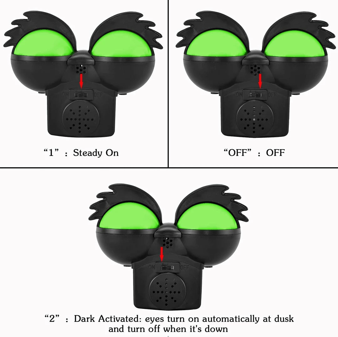 - Dark activated: eyes turn on automatically at dusk and turn off when it‘s dawn.