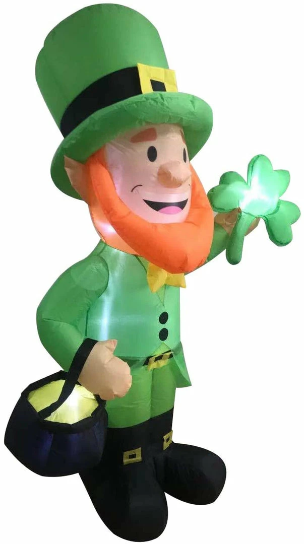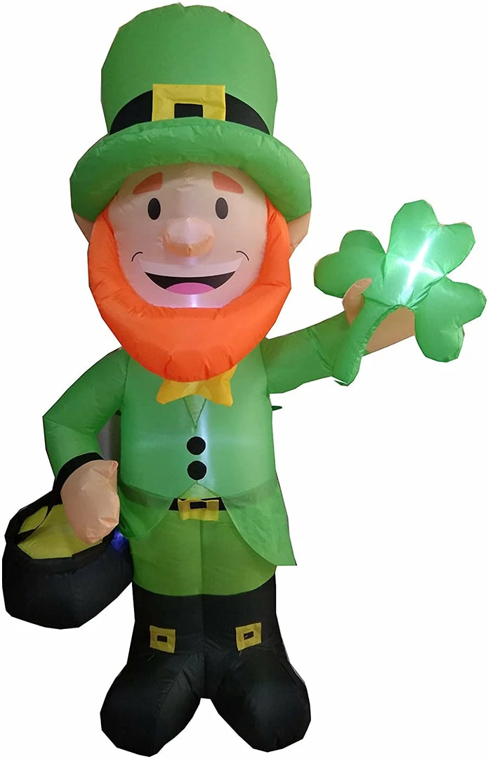 - UNIQUE DESIGN. Start your holiday festivities. Share the luck of the Irish with St. Patrick’s Day themed novelty decoration. The Leprechaun inflate is a great way to spread this holiday spirit. This patio inflatable feature a friendly but mischievous Leprechaun character. A figure from Irish folklore!