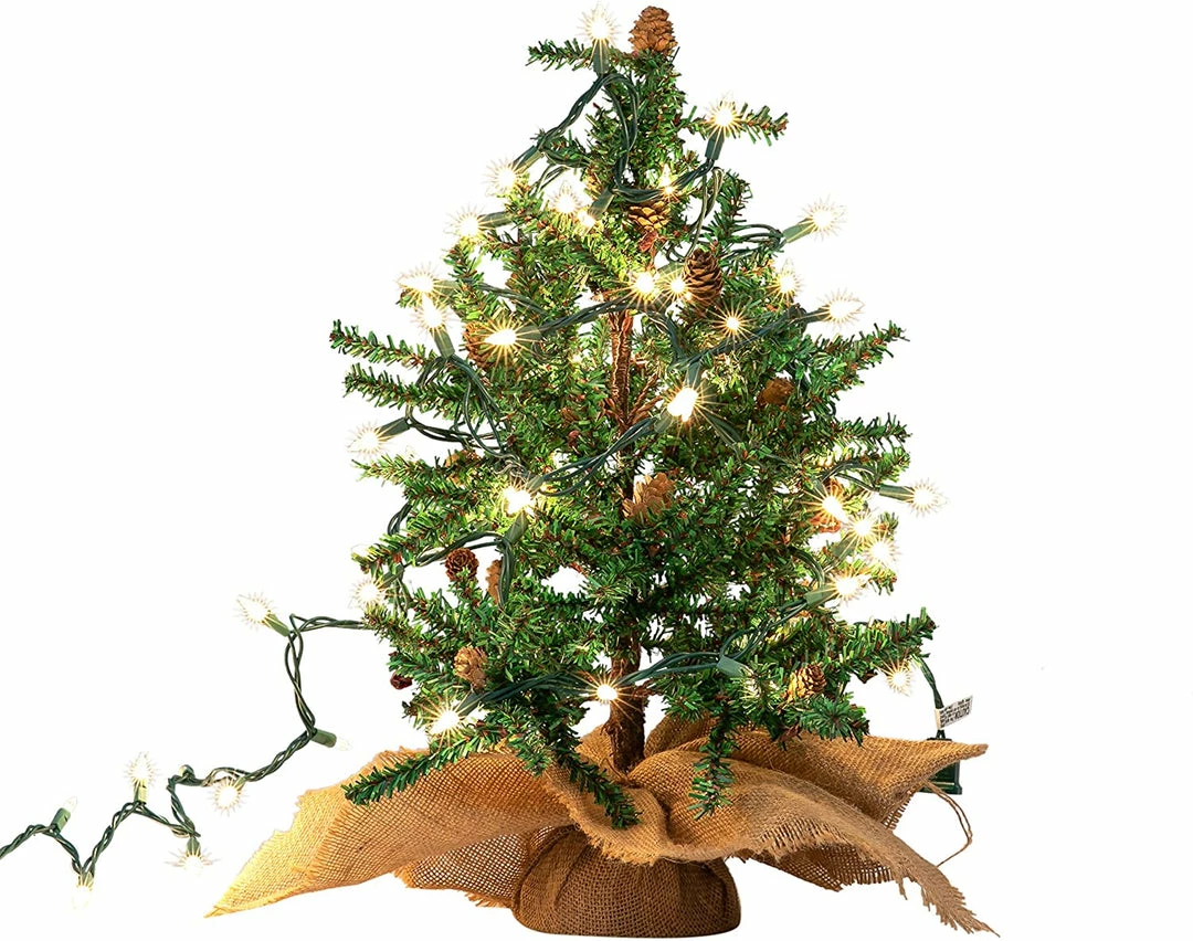 - UNIQUE DESIGN – This pre-lit Christmas pine tree has an overall height of 17 inches with a round base and 50 warm white lights